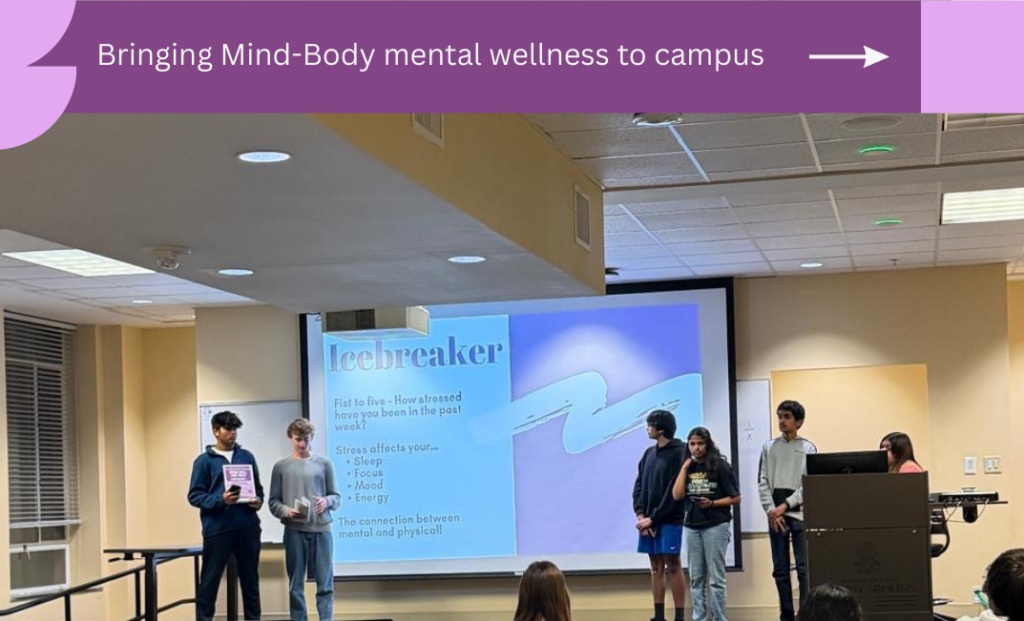 Our service event was an on-campus mental health awareness initiative focused on the mind-body connection. We presented the purpose and goal of our mental health promotion campaign, who we are and why we started this campaign.